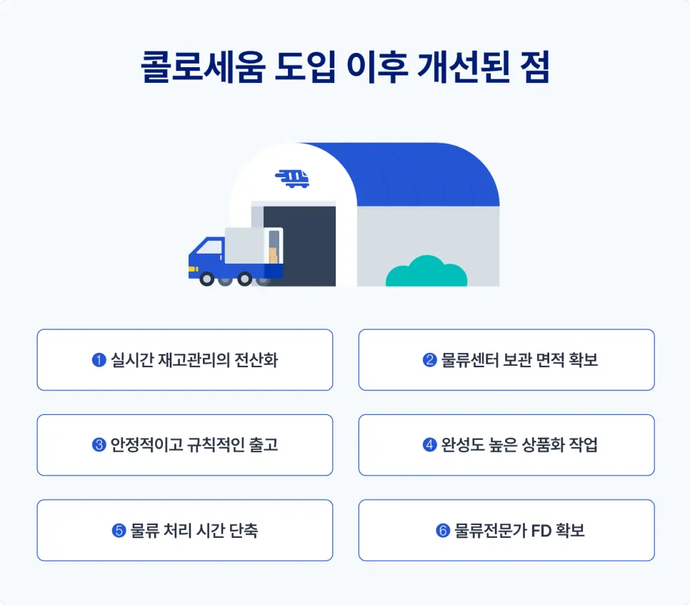 콜로세움 풀필먼트 도입 후 물류 처리 방식에 있어 개선된 점은 무엇이 있나요?