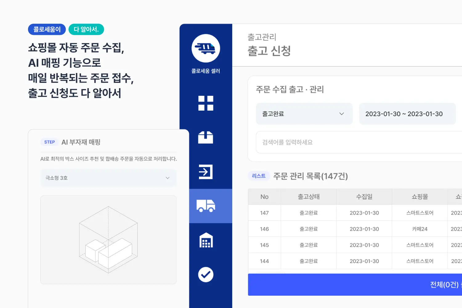 개인적으로는 AI 부자재 매핑 기능이 출고하려는 상품과 부자재를 자동으로 매핑해줘 업무 시간을 줄이는데 굉장히 효과적이라는 점입니다. 상품에 맞는 적절한 크기의 부자재를 COLO 시스템 내에 업로드 해두기만 하면 그때 상황에 맞게 데이터를 연동해 본 제품과 부자재가 자동으로 매핑되어 30분 이상 소요되었던 출고 업무가 10분이면 가능해진다는 점이 굉장히 만족스럽습니다.